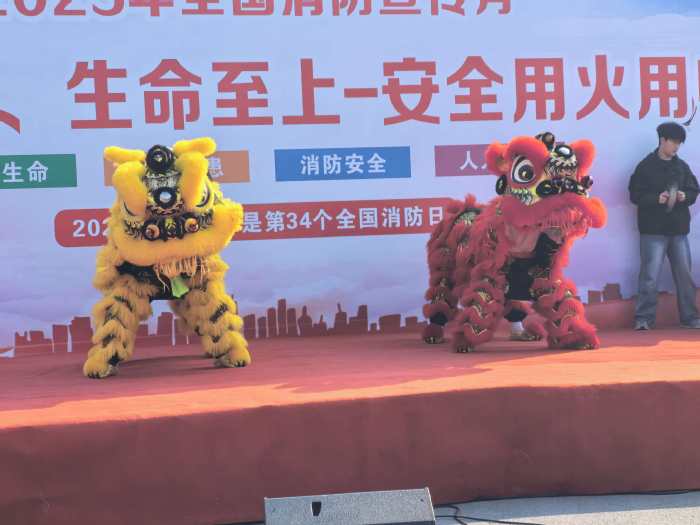 为丰富仪式内容、传递青春活力,开封职业学院学生精心准备了舞狮与武术表演。灵动的舞狮腾跃翻转,刚劲的武术招式行云流水,赢得现场阵阵掌声,既展现了学子风采,也让消防安全教育在轻松氛围中更易深入人心。