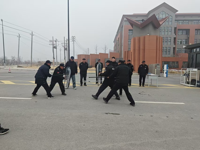 围绕消防安全与防恐防暴两大重点,保卫处组织开展应急实战演练。消防演练环节,重点围绕消防栓规范使用开展实操培训,详细讲解操作流程和注意事项,并组织人员现场实操实训,确保安保人员熟练掌握操作技能。防恐防暴演练模拟可疑人员强行闯入校园场景,安保人员快速响应、密切配合,规范使用防暴盾牌、钢叉等器械,高效完成警戒、合围、控制、上报等处置流程,全面提升协同作战与应急处突能力。
